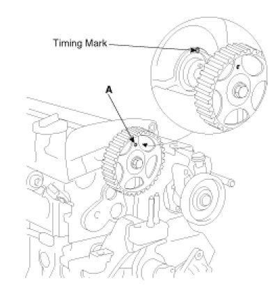 8. Check the alignment of the timing marks on each sprocket.
