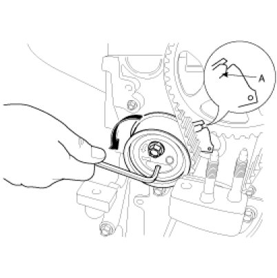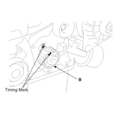 If the timing belt is reused, make an arrow indicating the turning direction to make sure that the belt is reinstalled in the same direction as before.