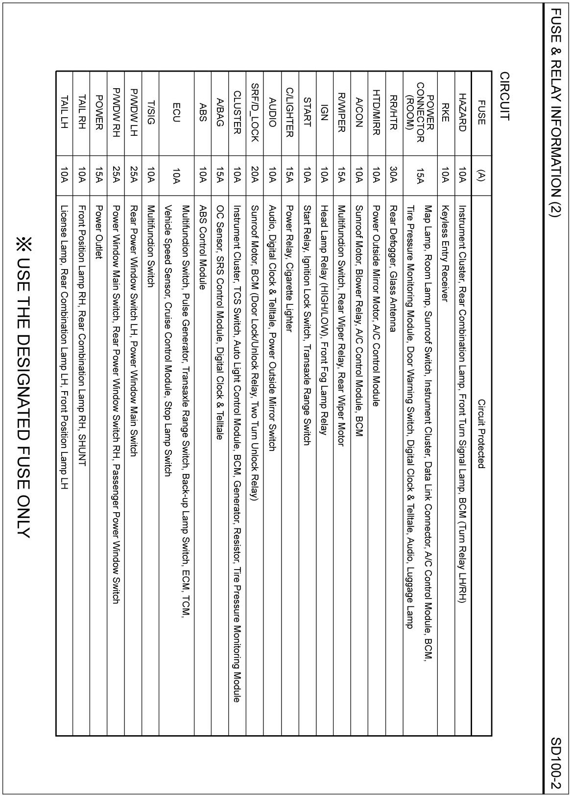 FUSE & RELAY INFORMATION