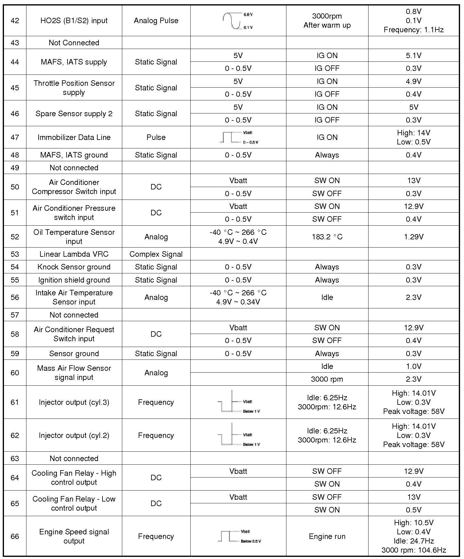 Pinout Values and Diagnostic Parameters