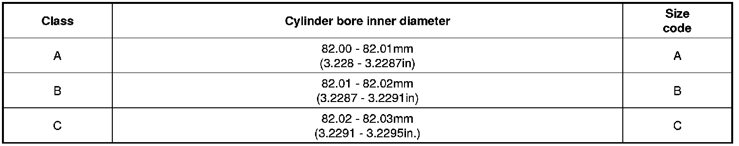 Check the cylinder bore size code on the cylinder block bottom face.