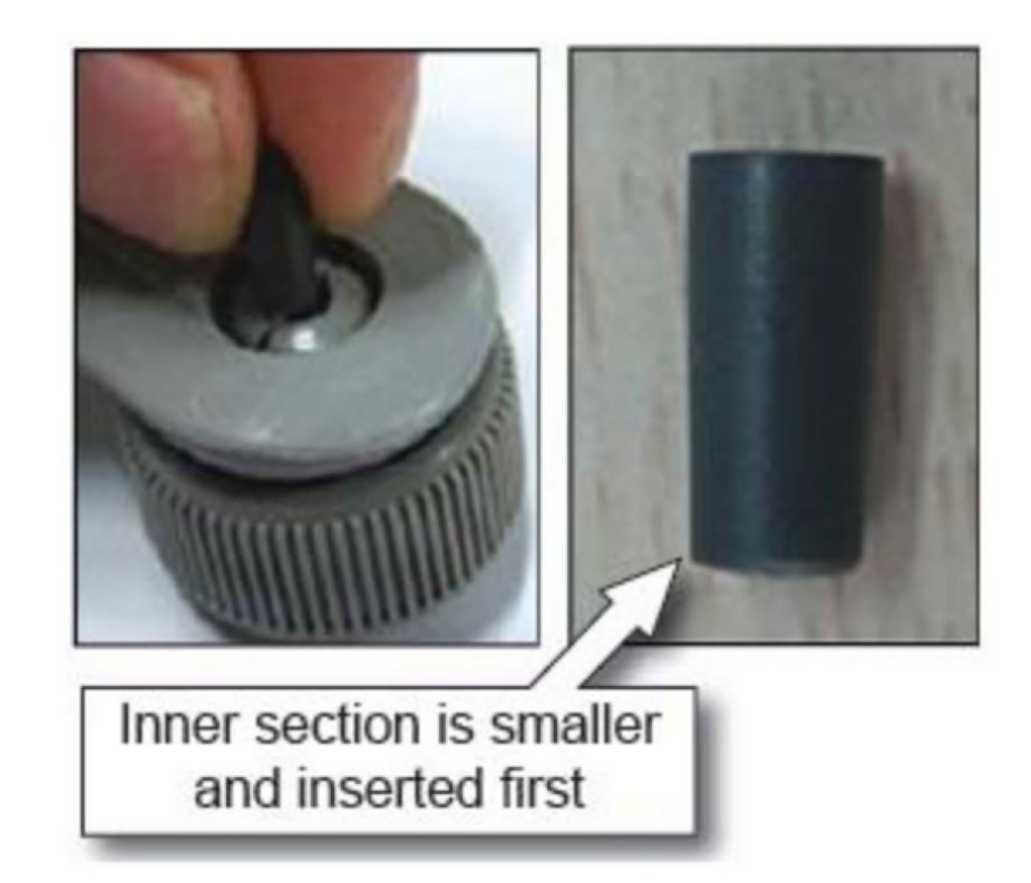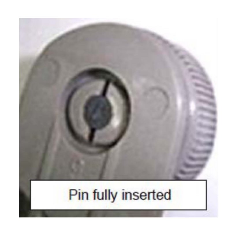 1. If the pin is not pushed in flush, finish the insertion process using the flat blade of a screwdriver, pushing the pin in until flush with the knob as shown.