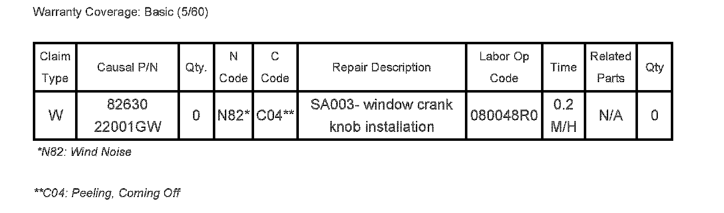 Service Action (SA003): 2009 Spectra Manual Window Crank (Body - 044)