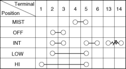 With the multi function switch in each position, make sure that continuity exists between the terminals below. If continuity is not as specified, replace the multi-function switch.