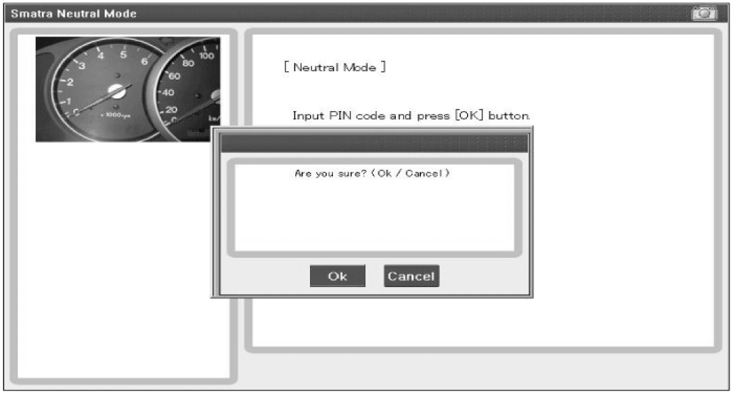can be set to the "neutral" status by a scanner. If wrong vehicle specific data have been sent to SMATRA three times continuously or intermittently, the SMATRA will reject the request to enter neutral mode for one hour. Disconnecting the battery or other manipulation cannot reduce this time. After connecting the battery the timer starts again for one hour.