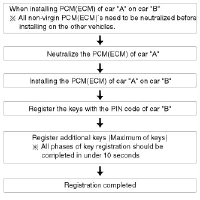 If the PCM(ECM) status and the key status do not match for teaching of keys, the tester procedure will be stopped and a specific fault code will be stored at PCM(ECM).