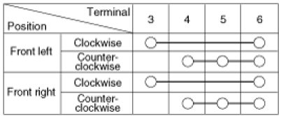 4. Check for continuity between the terminals in each switch position when inserting the key into the door according to the table.
