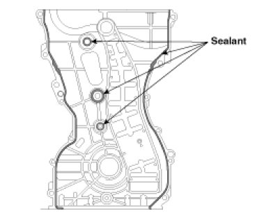(3) Before assembling the timing chain cover, the liquid sealant Loctite 5900H or THREEBOND 1217H should be applied on the gap between cylinder head and cylinder block.