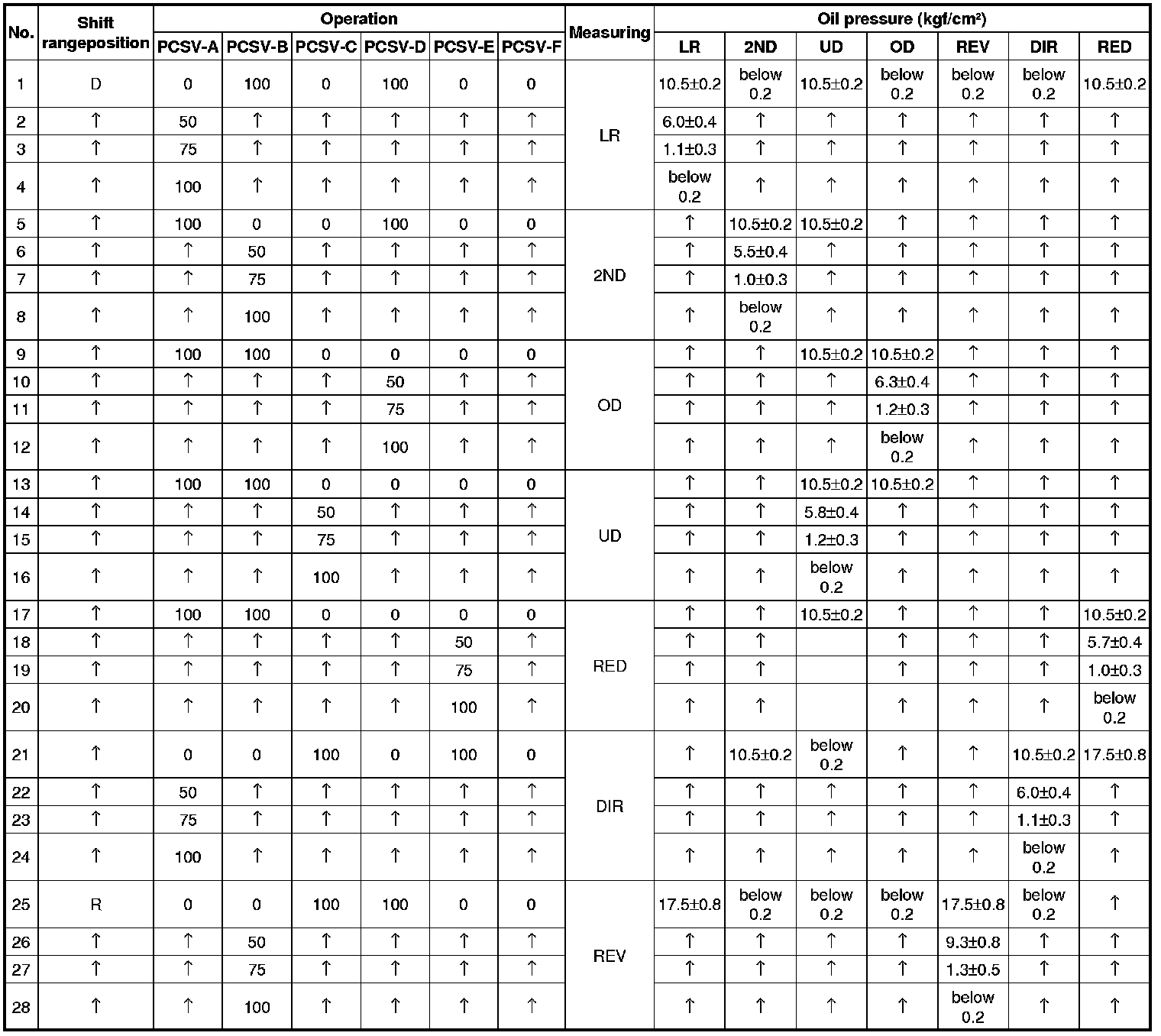 5. If a value is outside the standard range, correct the problem while referring to the hydraulic pressure test diagnosis table.