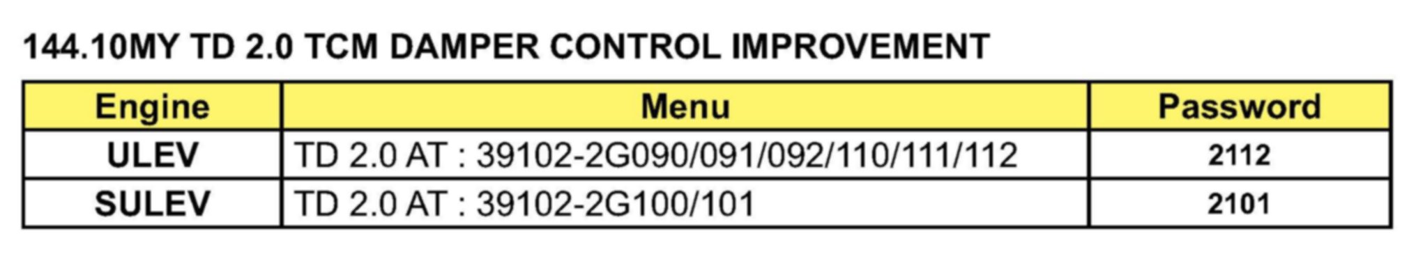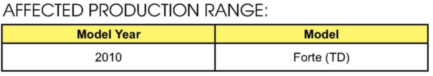 This bulletin provides the procedure to upgrade the Transmission Control Modules (TCM) of some 2010MY Forte (TD) 2.0L A/T (4-Speed) vehicles to improve torque converter clutch logic while driving with cruise control activated. For confirmation that the latest reflash has been done to a vehicle you are working on verify ROM ID using the tables in this TSB. To ensure maximum customer satisfaction Kia is requesting the completion of this Service Action on all affected 2010MY Forte vehicles.