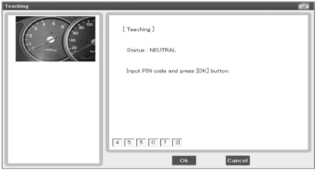 The teaching is started by ignition on, with a valid key(learnt key) and sending the user password by tester. After successful teaching, the status of the user password changes from "virgin" to "learnt"