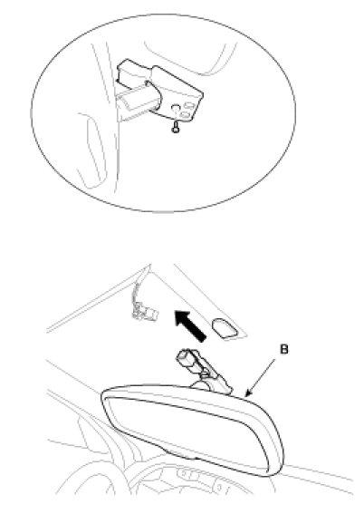 3. Push the ECM mirror base up to remove the ECM mirror assembly (B).