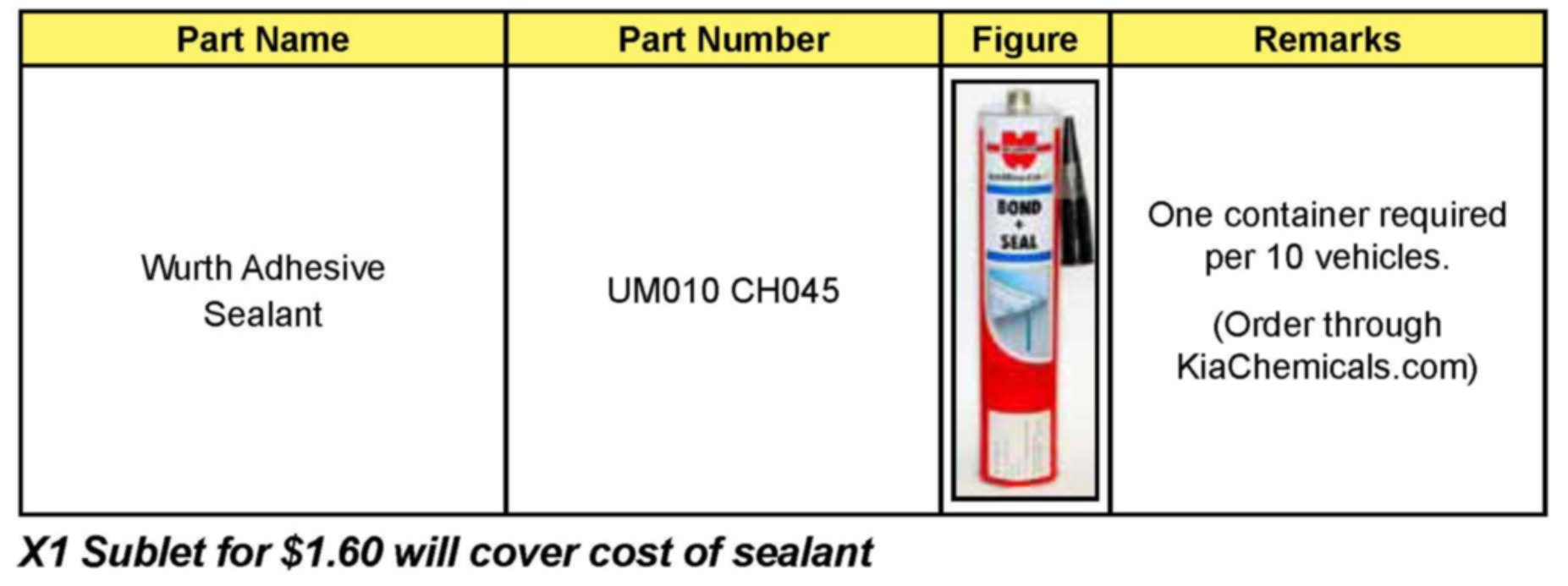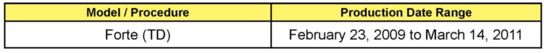This bulletin provides information relating to 2010-2011MY Forte (ID) vehicles built from February 23, 2009 to March 14, 2011 and in which sealant in certain body seams of the front wheel wells may have been incompletely applied. Kia is providing the repair procedure in this bulletin to inspect and if necessary apply additional sealant to the affected seams as protective sealing against corrosion. This procedure covers affected 2010-2011MY Forte (ID) vehicles that were sold in the 21 states which are known to use heavy amounts of road salt. The 21 states are: CT, DC, DE, IA, IL, IN, MA, MD, ME, MI, MN, MO, NH, NJ, NN, OH, PA, RI, VT, WI, WV. Before conducting the procedure as specified in this TSB, verify that the vehicle is included in the list of affected VINs. Once confirmed, proceed to the Service Procedure to inspect and if necessary apply additional sealer as instructed.