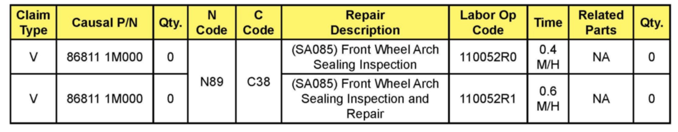 VIN inquiry data for this repair is provided for tracking purposes only. Kia retailers should reference SA085 when accessing the WebDCS system.