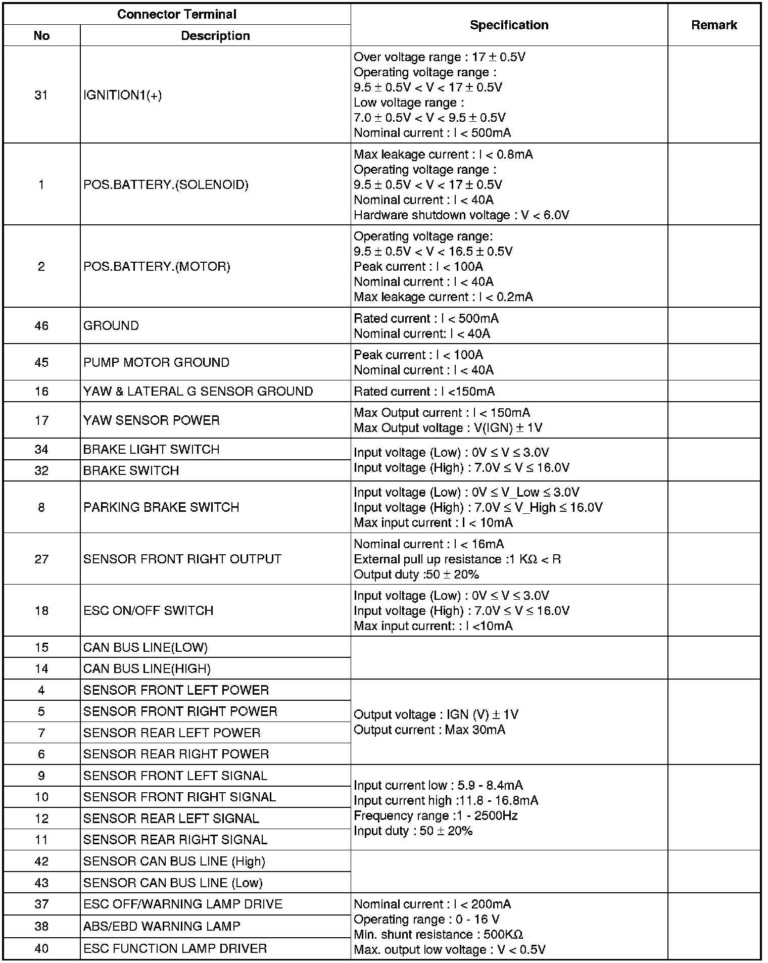ESC Connector Input/Output