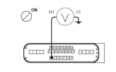 2. Turn the ignition switch ON, measure the voltage between terminal 3 of the ABS control module harness side connector and body ground.
