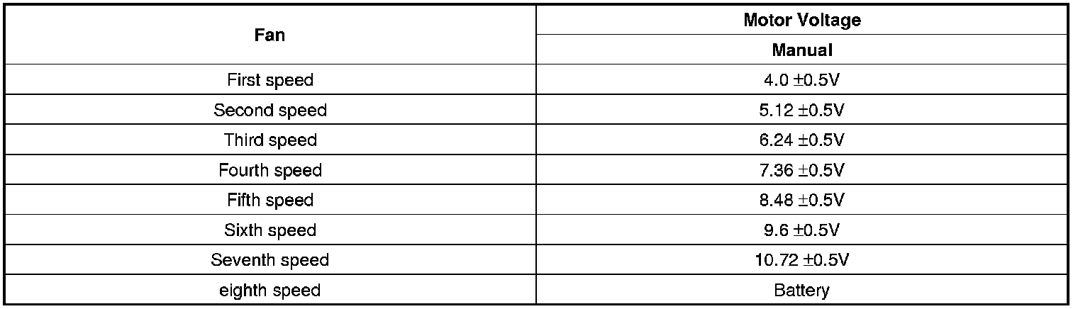 2. Manually operate the control switch and measure the voltage of blower motor between pin 1 and 2.