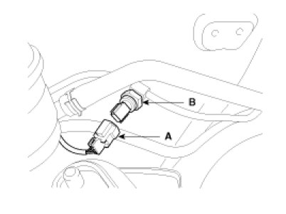 3. Disconnect A/C pressure transducer connector (3P) (A).