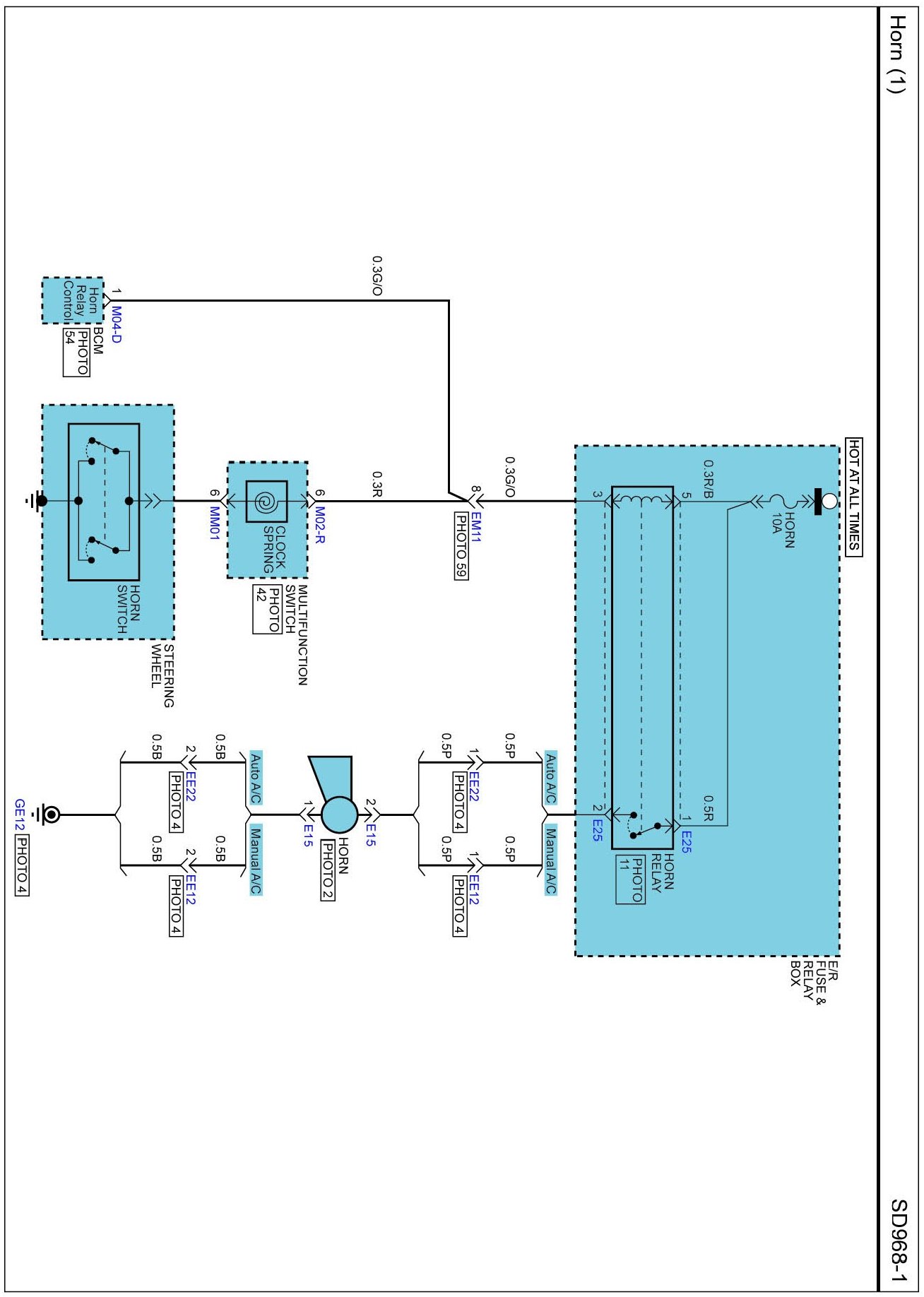 Horn (1) Connector Pin Outs: