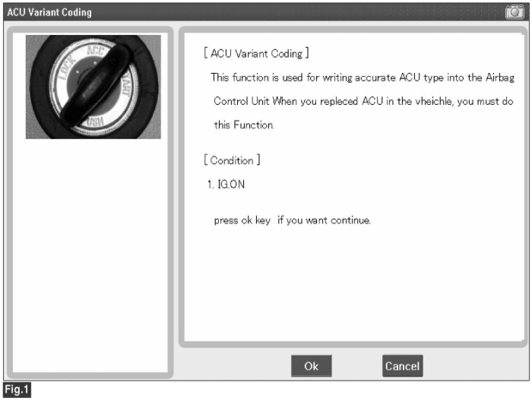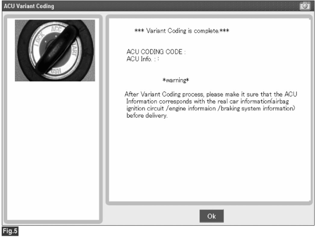 2. If the variant coding is failed, DTC B1762 (ACU Coding Error) will be displayed and the warning lamp will be turned on.