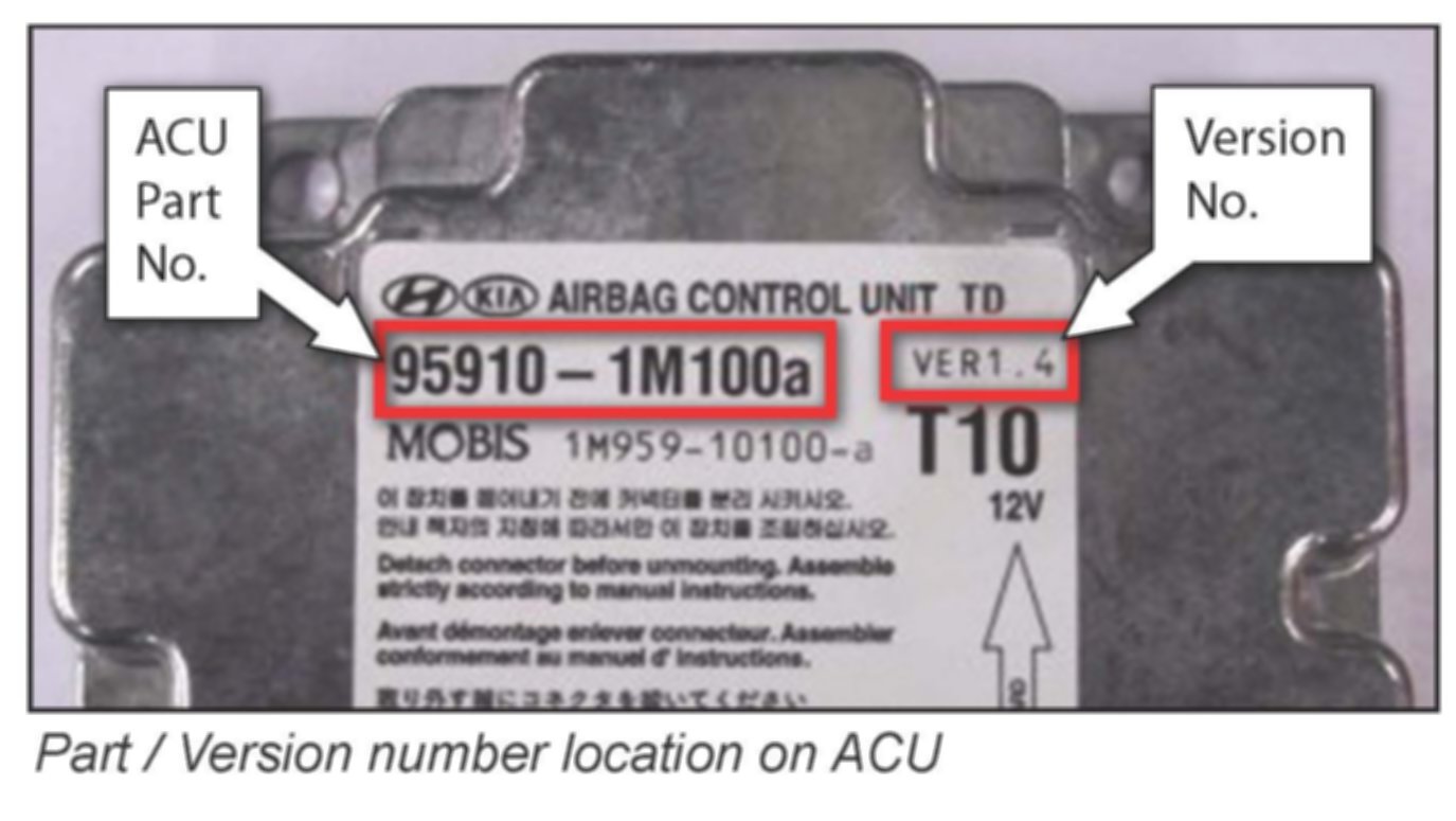 This bulletin provides information about the replacement of Airbag Control Units (ACU) in Forte (TD) vehicles which depending on production date may be equipped with or without drivers Seat Track Position Sensors (STPS). Vehicles manufactured up until Oct 19, 2009 are STPS equipped and those manufactured afterward are not. It is critical that the correct P/N ACU be used or the SRS MIL may illuminate. Please refer to information below for correct P/Ns of ACU for your reference.