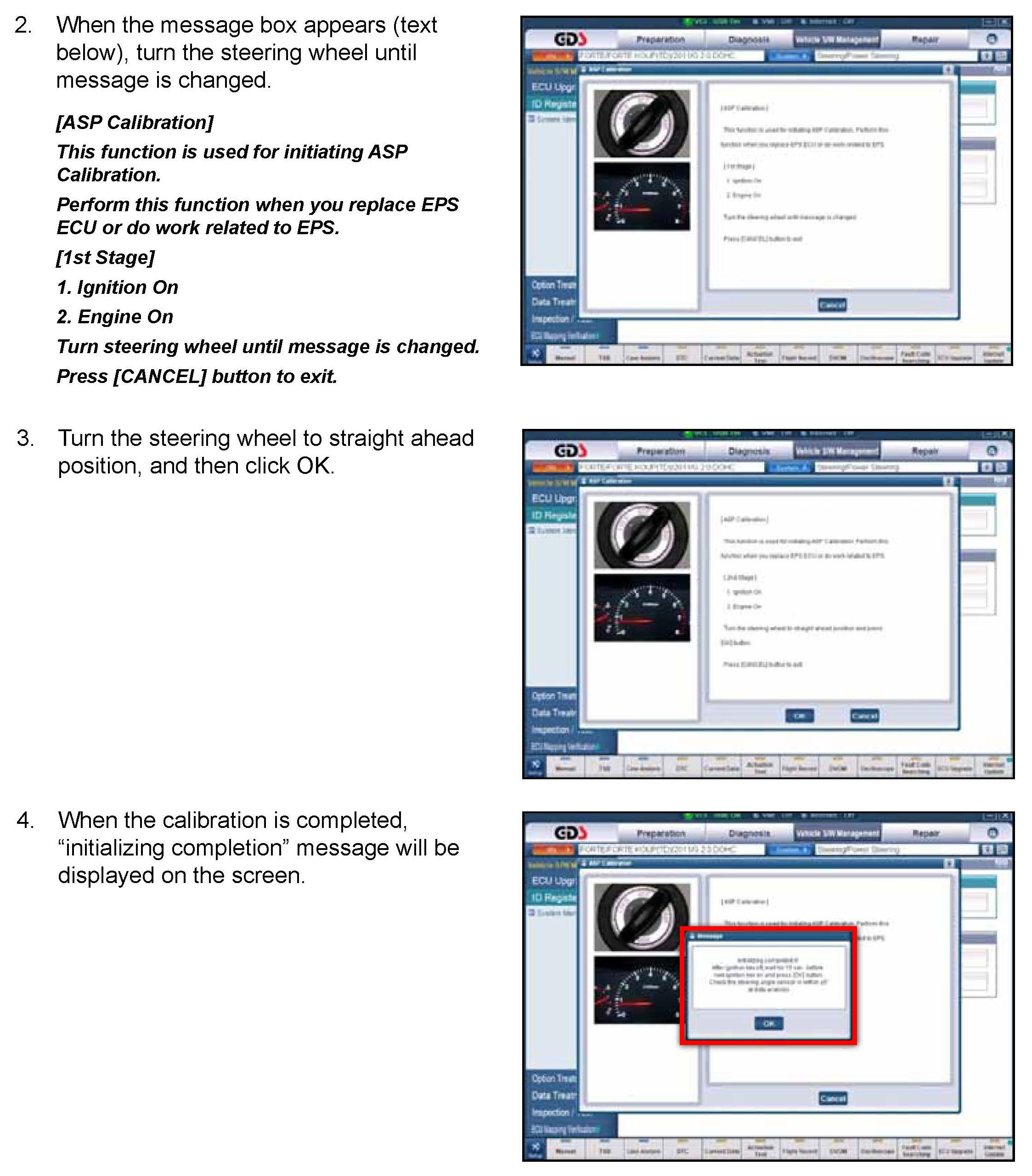 This bulletin provides information related to the EPS ECM software upgrade of some EGO equipped 2010/2011 MY Forte (ID) vehicles produced before June 1 2011 which may experience a Malfunction Indicator Lamp illuminated with the EPS (Electric Power Steering or Motor Driven Power Steering) system-related DTC G1290