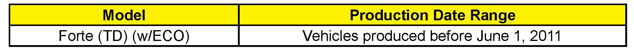 AFFECTED VEHICLE PRODUCTION RANGE: