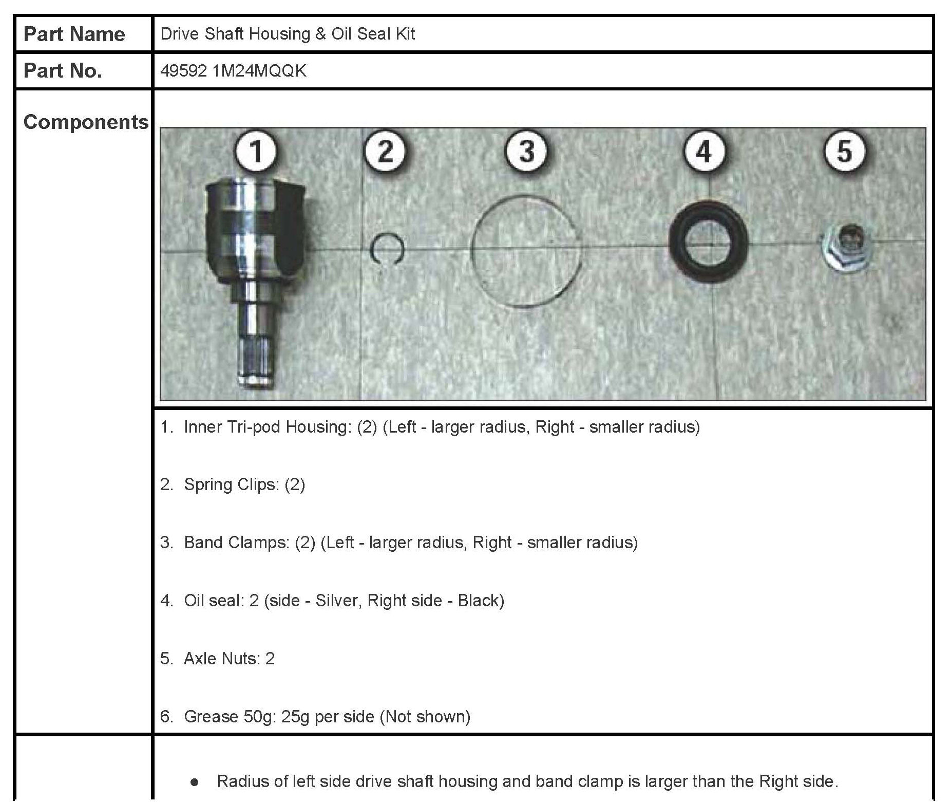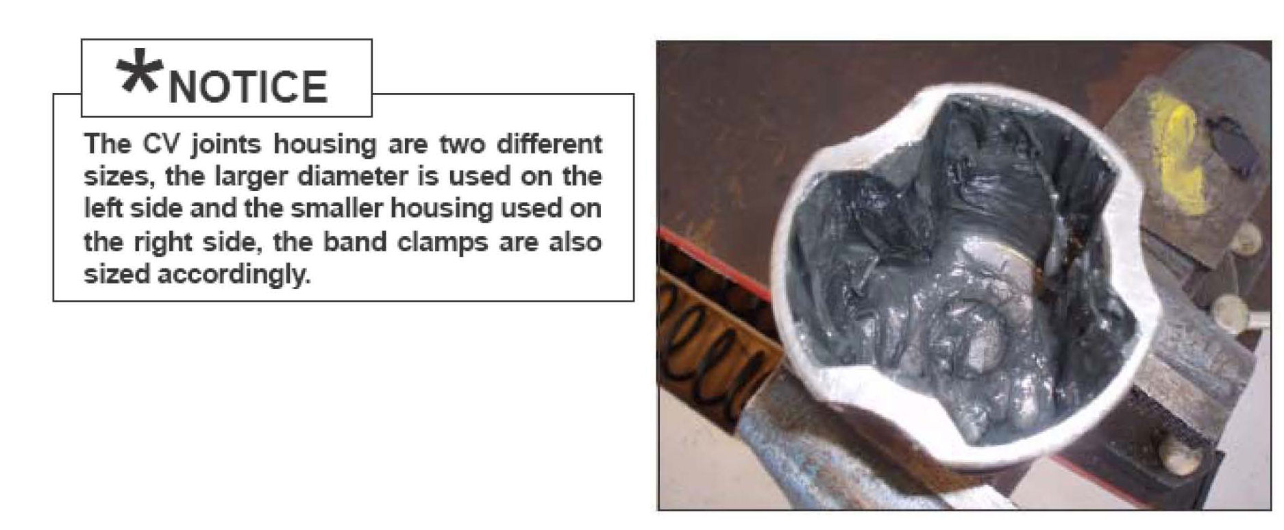 This Service Action provides information related to 2010 Forte (TD) produced from 2/23/2009 ~ 8/12/2009 equipped with 6-speed manual transaxles. Some 2010 Forte vehicles may have interference with the inner tri-pod housing contacting with the axle seal cage. This bulletin describes the proper service procedure for replacing the inner tri-pod housing on both left and right side axle assemblies. Follow these instructions as some left and right hand replacement components are different in size and length.