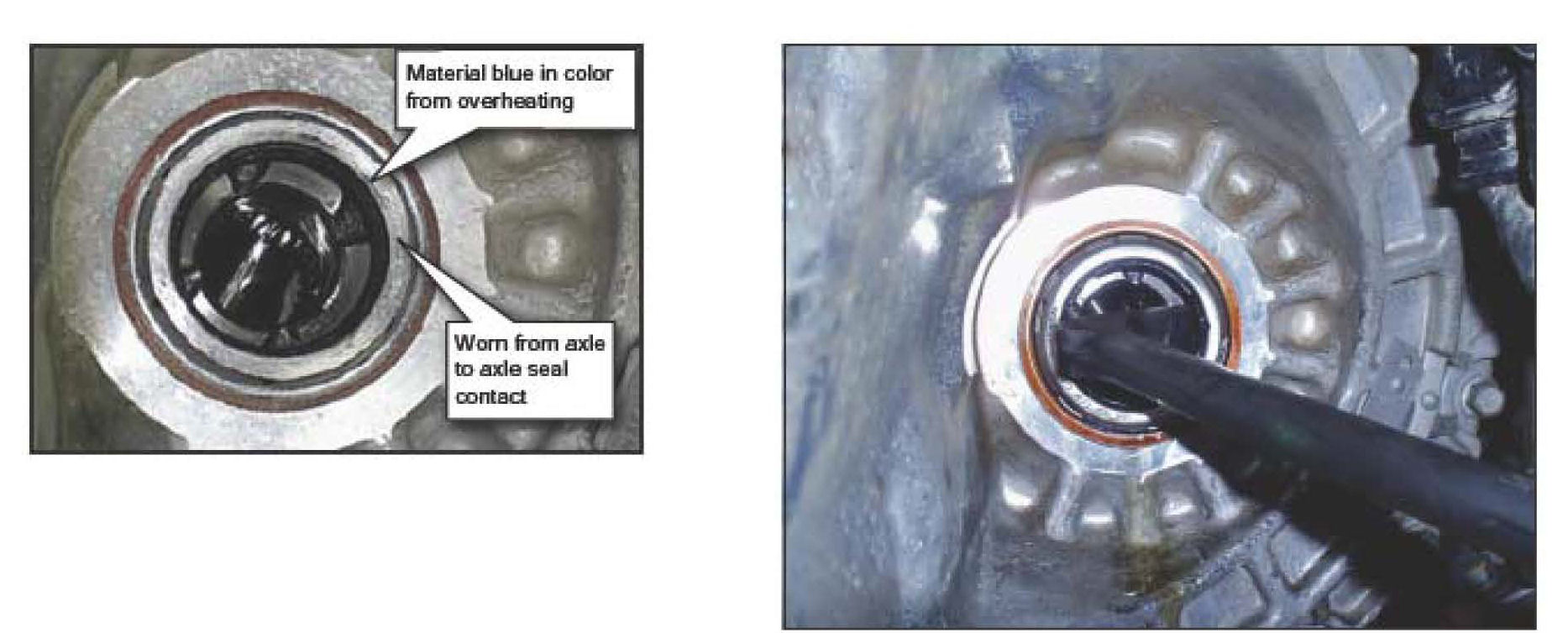 8. Inspect the oil seal carefully for interference and contact. If contact has occurred replace the axle seal using a seal remover tool as shown.