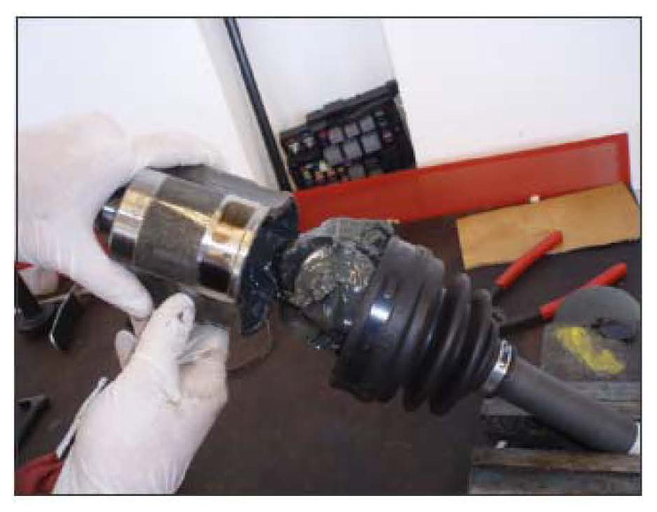 11. Using the supplied grease, use half the container of grease to lubricate the new inner tripod joint housing and transfer the remaining grease from old housing into the replacement inner tri-pod housing.