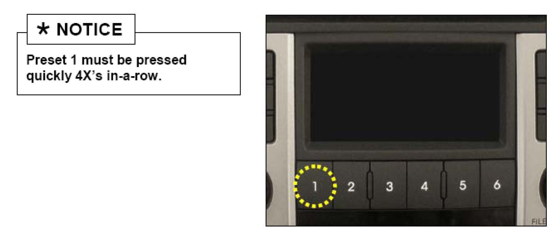 5. Press the preset 1 button repeatedly four times (4X) in-a-row.