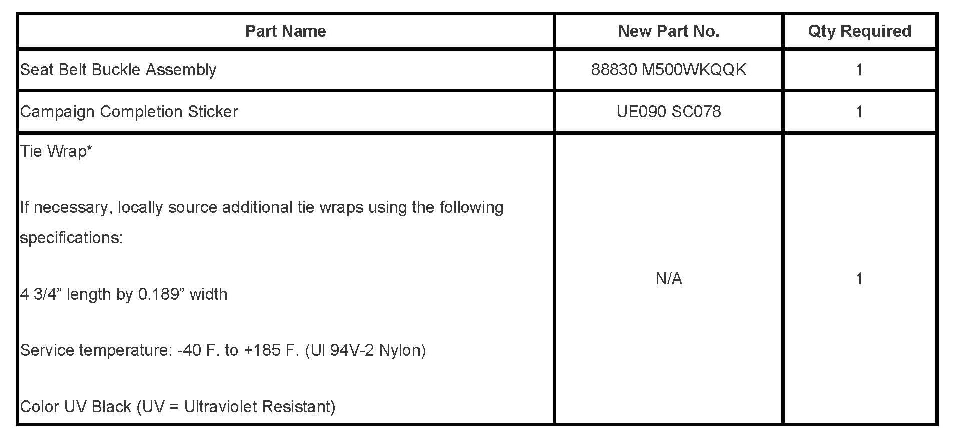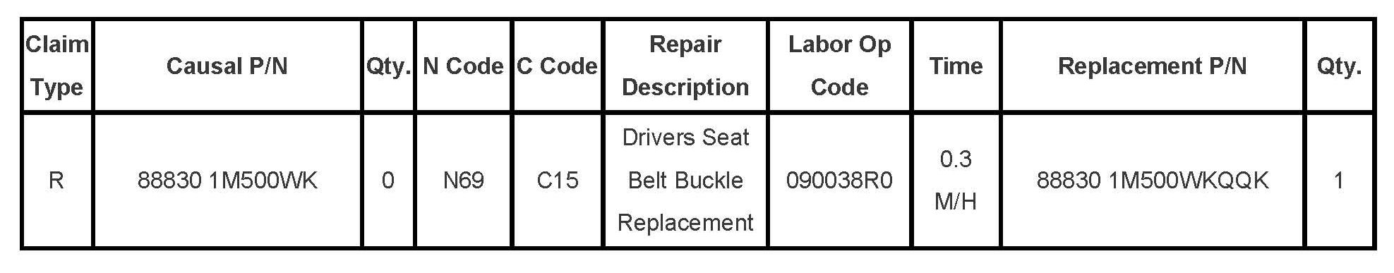 Verify the vehicle is contained in the list of affected VIN's. Use the following service procedure to replace the drivers seat belt buckle, part number 88830 1M500WK with new seat belt buckle, part number 88830 1M500WKQQK.