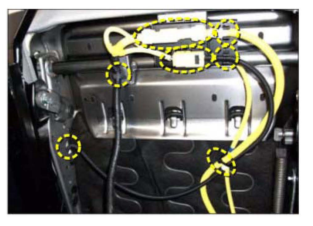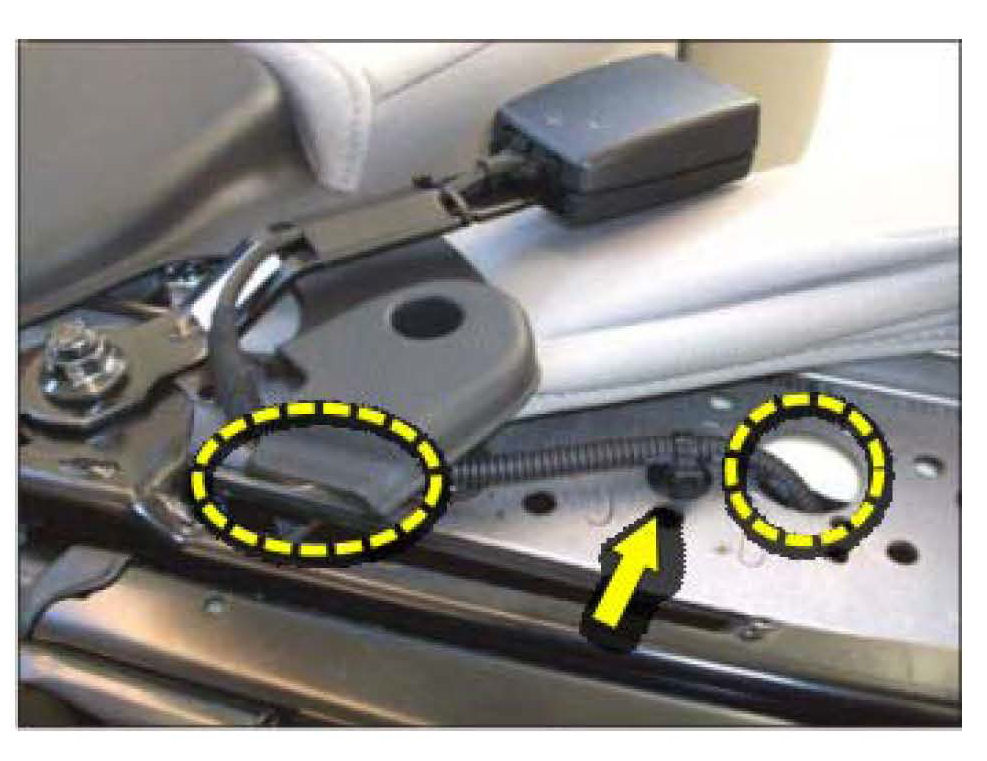 10. Verify all the harnesses and connectors are properly routed and secured and that the connector mounting bracket is securely attached to seat frame.