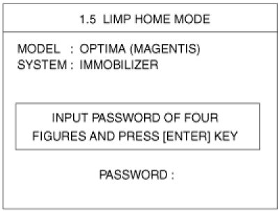 If the PCM(ECM) detects the fault of the SMARTRA or transponder, the PCM(ECM) will allow limp home function of the immobilizer. Limp home is only possible if the user password (4 digits) has been given to the PCM(ECM) before. This password can be selected by the vehicle owner and is programmed at the service station.
