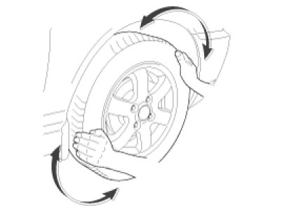 2. Grip each front tire at the top and bottom and move the wheel inward and outward while lifting the weight of the tire off the front wheel bearings.