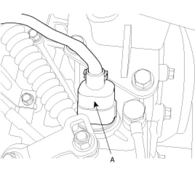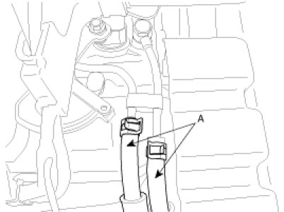 7. Remove the transaxle oil cooler hoses(A) releasing the clamps.