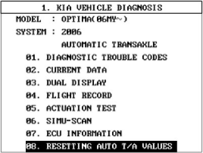 5) Select 'RESETTING AUTO T/A VALUES' and perform the procedure.