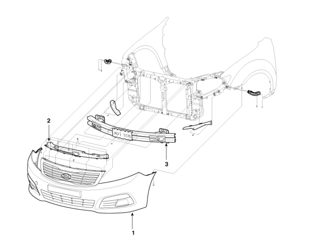 2. Loosen the front bumper cover mounting screws and clips.