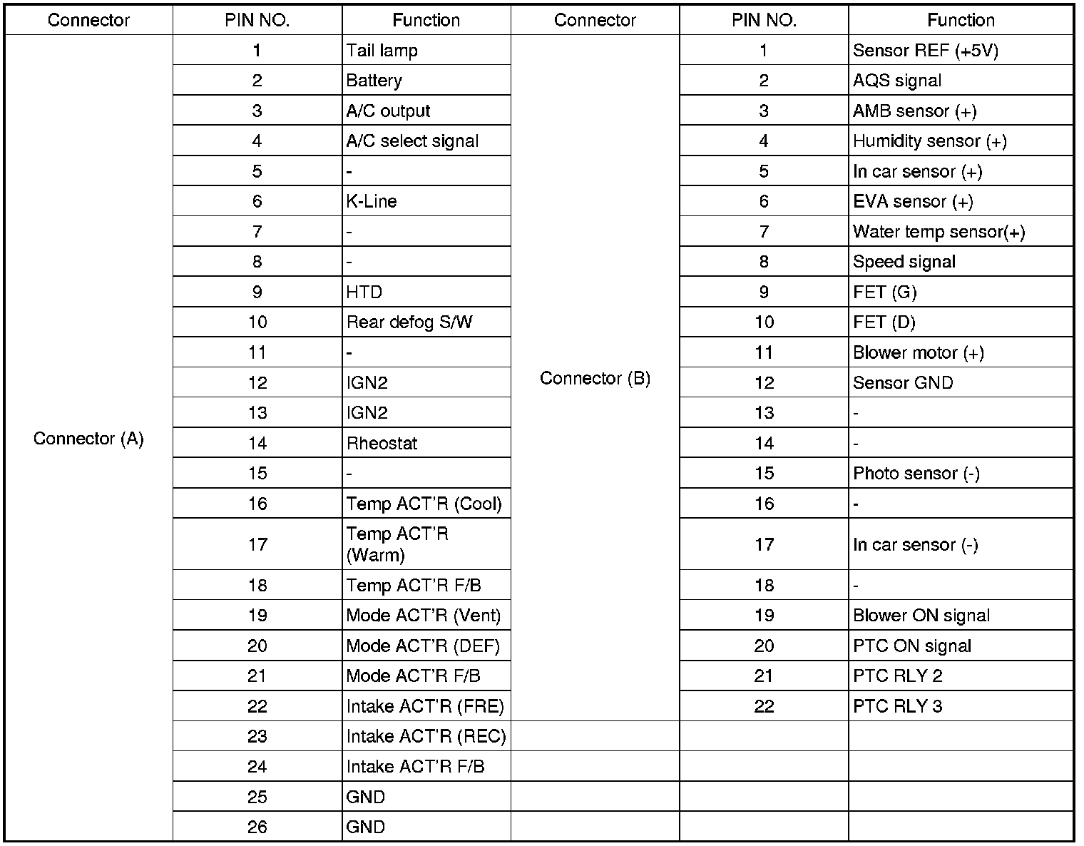CONNECTOR PIN FUNCTION