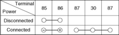 2. There should be continuity between the No.30 and No.87a terminals when power is disconnected.