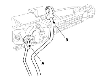 3. Disconnect the lock rod (A) and outside handle rod (B).