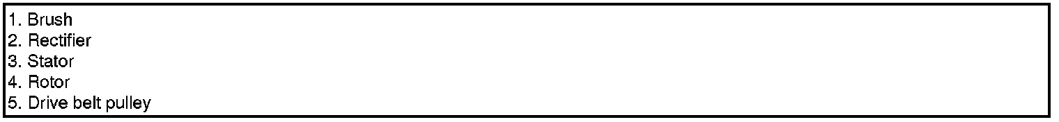 The main components of the alternator are the rotor, stator, rectifier, capacitor brushes, bearings and V-ribbed belt pulley. The brush holder contains a built-in electronic voltage regulator.
