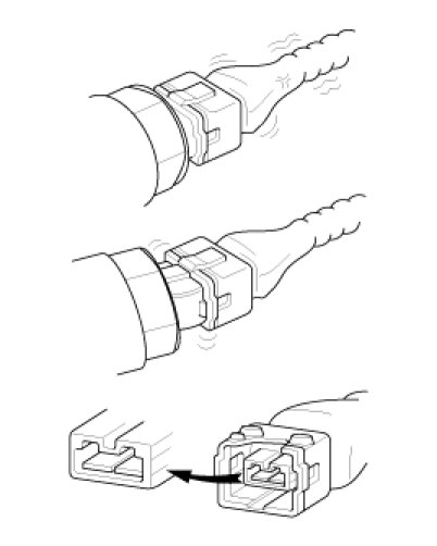 3. Slightly shake the connector and wiring harness vertically and horizontally.