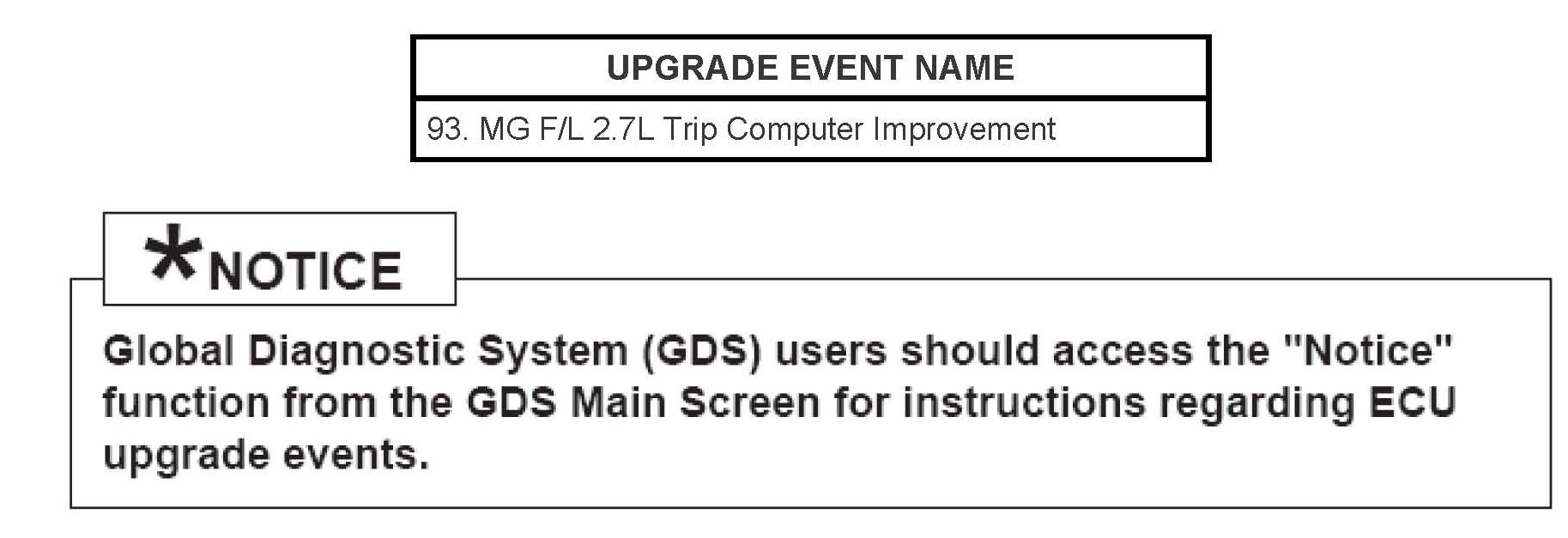 This bulletin provides information related to the PCM software upgrade of 2009~2010 Model Year Optima (MG) equipped with 2.7L engines and automatic transmission produced prior to 8/31/2009, which may experience an average fuel consumption display error. Some customers may complain the average fuel consumption on the IP cluster does not work correctly.