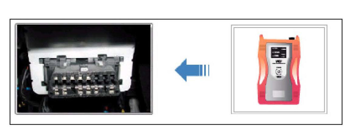 4. Connect the Main 16-pin DLC cable (GHDM - 241000) to the OBD-II connector, located under the driver's side of the instrument panel.