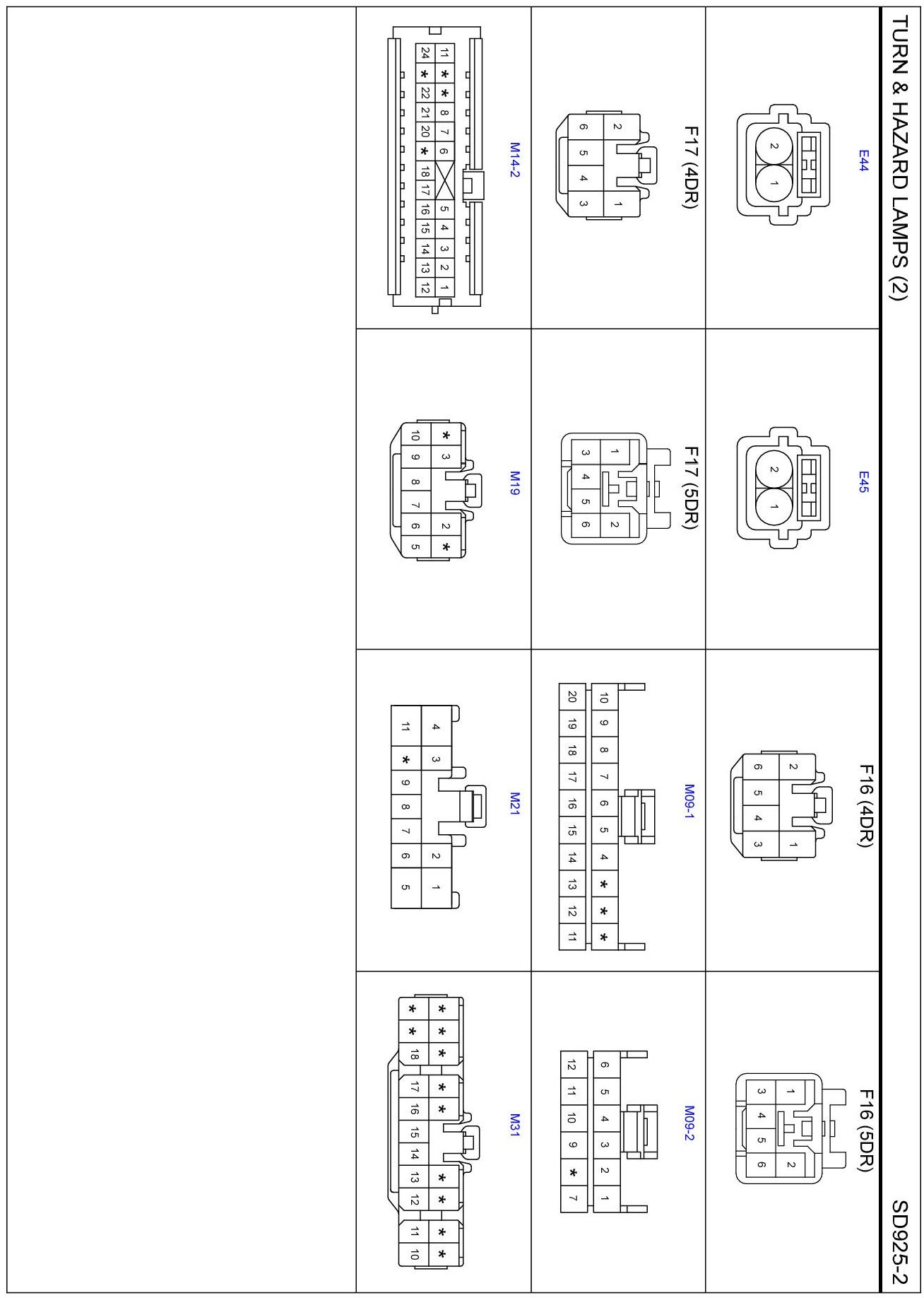 Turn & Hazard Lamps (2) Connector Pin Outs: