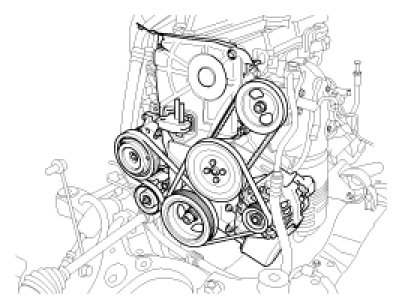 Rotate crankshaft in clockwise direction to set 1st piston on top dead center (TDC) and rotate crankshaft in counterclockwise to 90° then measure the belt tension in the middle of tension side span (in both arrow direction of above illustration ) by free vibration method.