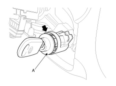 6. If it is necessary to remove the key lock cylinder (A), remove the key lock cylinder (A) after pushing lock pin with key ACC.