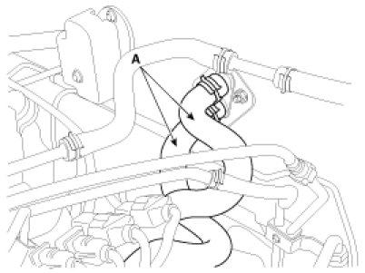 7. Remove the radiator upper hose (A) and lower hose (B).