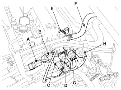 Disconnect the HO2S (Bank 1 / Sensor 1) connector (G), HO2S (Bank 1 / Sensor 2) connector (H) (SULEV only).